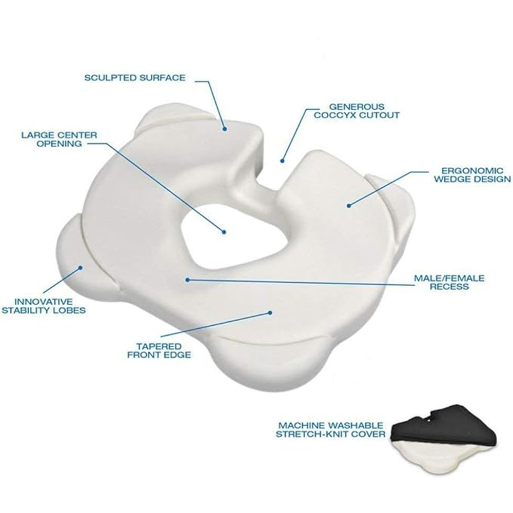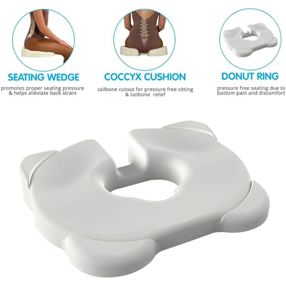 Combines the best of a donut cushion, coccyx relief cushion, and traditional seating wedge—all in one supportive design.